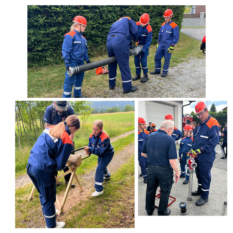 Am Nachmittag zeigten unsere Jugendlichen ihr feuerwehrtechnisches Können: Geräte- & Fahrzeugkunde, Standrohr setzen, Saugleitung kuppeln.